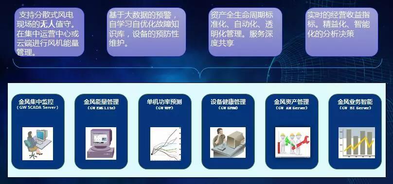 此外,金風(fēng)資產(chǎn)管理可實(shí)現(xiàn)集成化及自動(dòng)化設(shè)備資產(chǎn)檔案的采集,實(shí)現(xiàn)運(yùn)維管理標(biāo)準(zhǔn)化、流程化、智能化;而金風(fēng)業(yè)務(wù)智能則可監(jiān)控分散式風(fēng)電項(xiàng)目關(guān)鍵KPI,詳盡分析PBA,客觀透明評(píng)價(jià)風(fēng)機(jī)績(jī)效,明確提升方向。