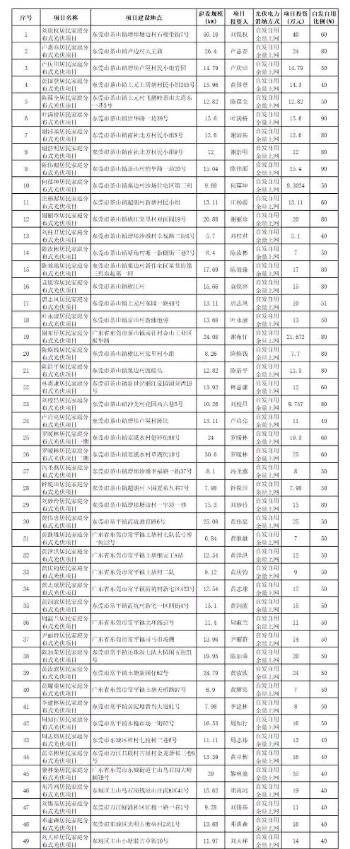 中國(guó)儲(chǔ)能網(wǎng)訊:日前,東莞市發(fā)改局發(fā)布了《關(guān)于同意第二十七期居民家庭分布式光伏項(xiàng)目備案的復(fù)函(東發(fā)改函〔2018〕975號(hào)》,此文件是針對(duì)廣東電網(wǎng)有限責(zé)任公司東莞供電局報(bào)來(lái)的《廣東電網(wǎng)有限責(zé)任公司東莞供電局關(guān)于報(bào)送第二十七期居民家庭分布式光伏項(xiàng)目備案資料的函》的相關(guān)回復(fù),據(jù)悉,此次批復(fù)共計(jì)301個(gè)項(xiàng)目,全部為居民自發(fā)自用,余電上網(wǎng)模式。文件全文如下: