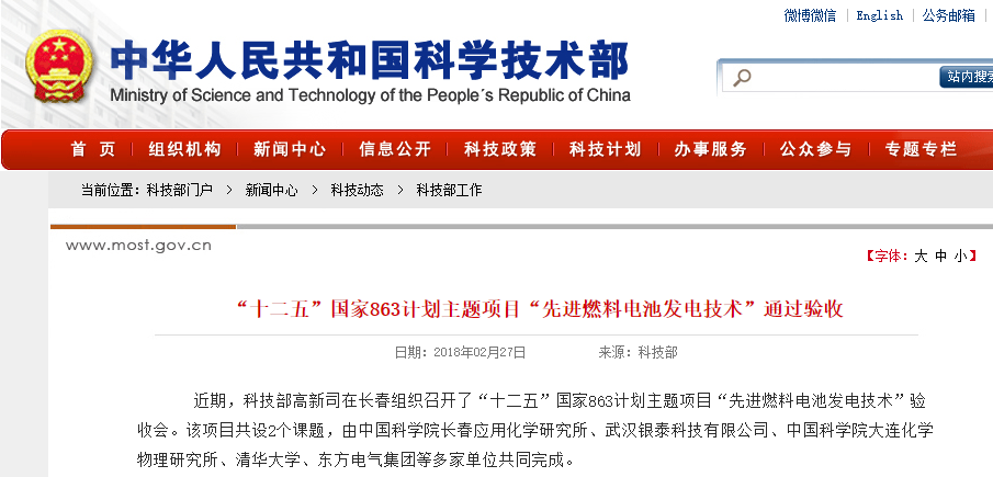 中國(guó)儲(chǔ)能網(wǎng)訊:近期,科技部高新司在長(zhǎng)春組織召開了“十二五”國(guó)家863計(jì)劃主題項(xiàng)目“先進(jìn)燃料電池發(fā)電技術(shù)”驗(yàn)收會(huì)。該項(xiàng)目共設(shè)2個(gè)課題,由中國(guó)科學(xué)院長(zhǎng)春應(yīng)用化學(xué)研究所、武漢銀泰科技有限公司、中國(guó)科學(xué)院大連化學(xué)物理研究所、清華大學(xué)、東方電氣集團(tuán)等多家單位共同完成。