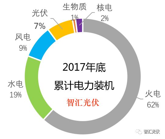 2017年,光伏累計(jì)裝機(jī)13025萬(wàn)kW,占電力總裝機(jī)的7.3%。