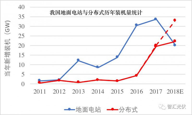2018年分布式光伏的裝機(jī)量可能首次超過(guò)地面電站。