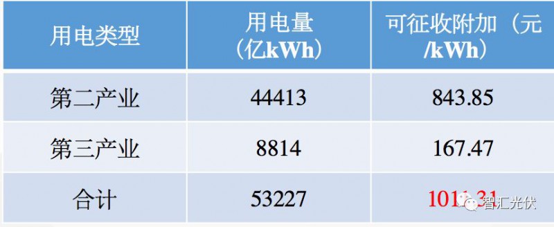 2017年,第二、第三產(chǎn)業(yè)的累計(jì)用電量為53227億kWh ,按照1.9分/kWh的標(biāo)準(zhǔn),理論上可以征收到1011.31億元可再生能源附加補(bǔ)貼。