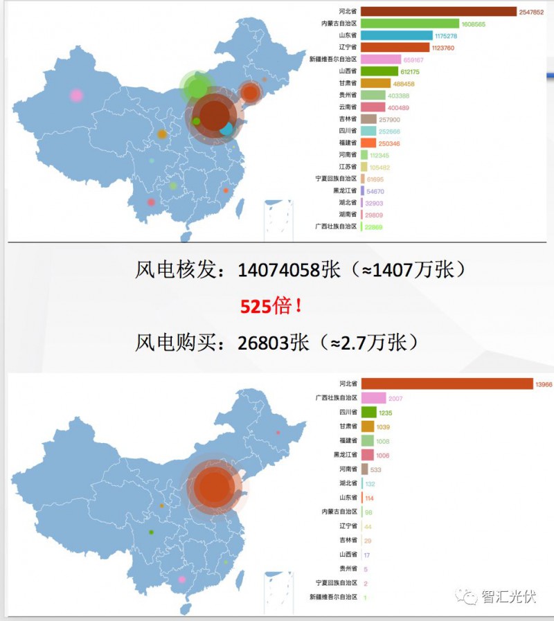 截止2018年1月20日,風(fēng)電綠證的核準(zhǔn)量是出售量的525倍!