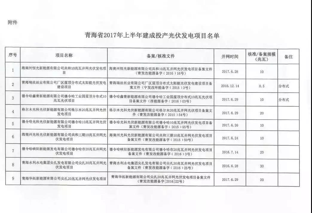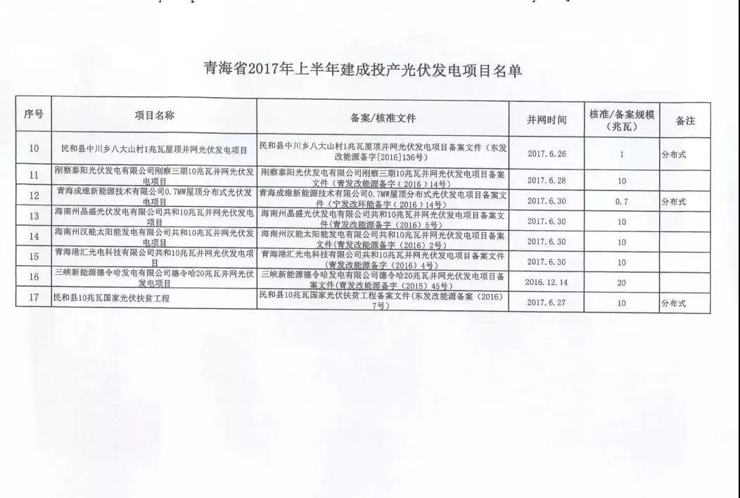 中國(guó)儲(chǔ)能網(wǎng)訊:日前,青海省發(fā)改委發(fā)布《關(guān)于公布青海省2017年上半年建成投產(chǎn)光伏發(fā)電項(xiàng)目上網(wǎng)電價(jià)的通知》。2017年上半年,青海省共有17個(gè)光伏項(xiàng)目建成投產(chǎn),總規(guī)模202.2MW,其中包括5個(gè)分布式光伏發(fā)電項(xiàng)目。