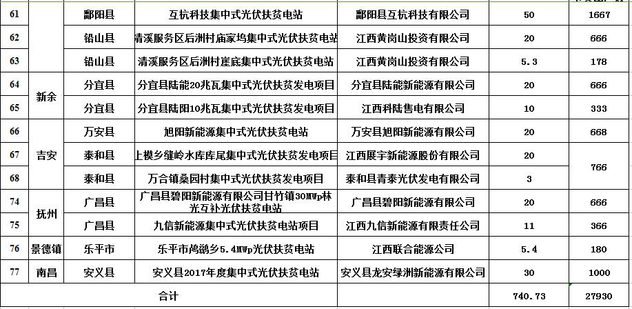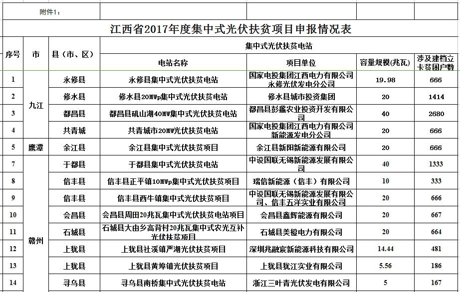中國儲(chǔ)能網(wǎng)訊:為用好、用足國家政策,做好集中式光伏扶貧電站項(xiàng)目申報(bào)工作和建設(shè)規(guī)模配置工作,江西省發(fā)展和改革委員會(huì)、江西省扶貧和移民辦公室印發(fā)了《關(guān)于開展2017年度集中式光伏扶貧項(xiàng)目申報(bào)工作的通知》(贛發(fā)改能源[2017]1401號(hào)),文中明確由市級(jí)發(fā)改委(能源局)會(huì)同市扶貧部門對(duì)實(shí)施方案進(jìn)行初審并于12月22日前報(bào)省發(fā)展改革委、省扶貧和移民辦,逾期不侯。
