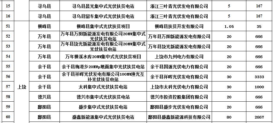 截止12月22日,共有10個(gè)市32個(gè)縣正式提交了實(shí)施方案,涉及77個(gè)項(xiàng)目、裝機(jī)1211.53兆瓦。其中,26個(gè)項(xiàng)目因未明確投資企業(yè)予以剔除,還有14個(gè)項(xiàng)目因政府投資比例不能滿足貧困戶3000元/年的收益予以剔除,4個(gè)項(xiàng)目因申報(bào)規(guī)模不符合要求調(diào)整了規(guī)模,37個(gè)項(xiàng)目裝機(jī)740.73兆瓦進(jìn)入審查環(huán)節(jié)。為保障集中式光伏扶貧電站建設(shè)規(guī)模配置工作公平、公正、公開, 現(xiàn)對(duì)項(xiàng)目基本情況予以公開。