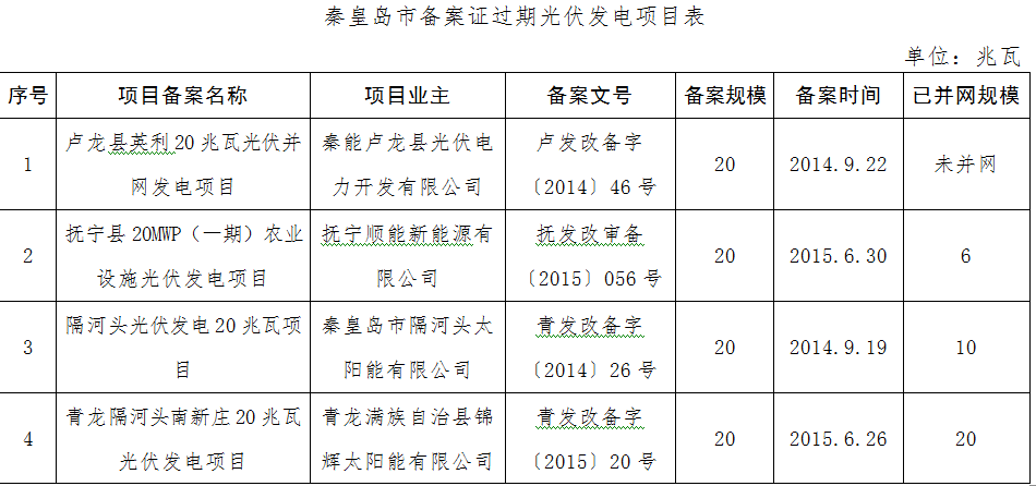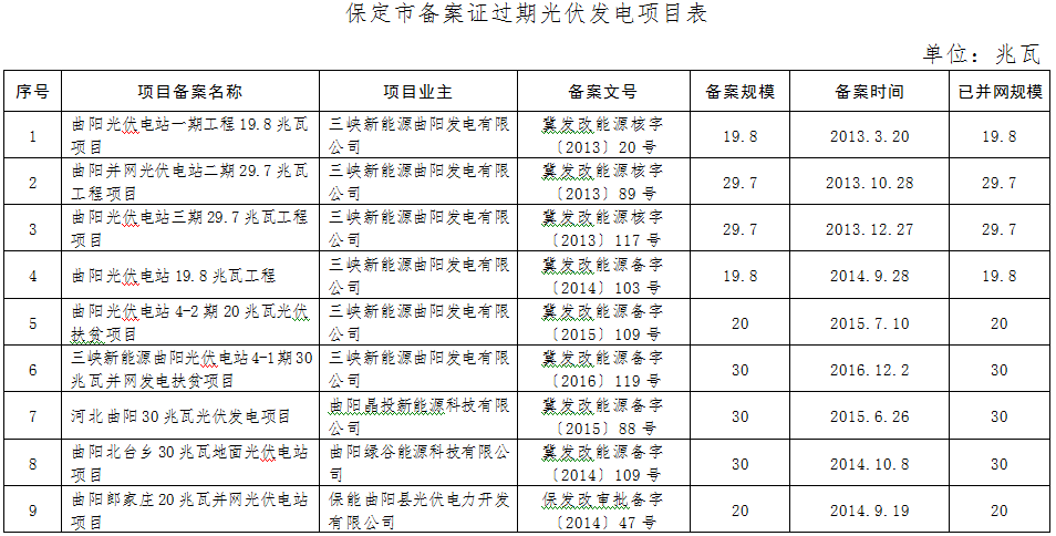 中國儲能網(wǎng)訊:按照河北省能源局《關于一次性報送光伏發(fā)電項目備案證過期影響土地、環(huán)評、發(fā)電許可等手續(xù)辦理出具意見請示的通知》要求,其中衡水市共上報光伏發(fā)電項目1個、備案規(guī)模20兆瓦;唐山市共上報光伏發(fā)電項目7個、備案規(guī)模147.29兆瓦;保定市共上報光伏發(fā)電項目21個、備案規(guī)模529兆瓦;滄州市共上報光伏發(fā)電項目2個、備案規(guī)模50兆瓦;秦皇島市共上報光伏發(fā)電項目4個、備案規(guī)模80兆瓦。