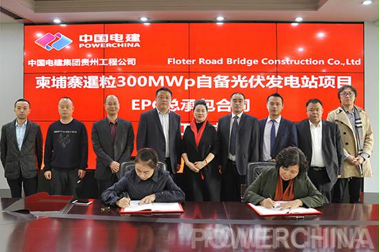 11月2日,中國電建集團(tuán)貴州工程公司與Floter Road Bridge Construction Co.,Ltd公司在貴陽簽訂了柬埔寨暹粒300兆瓦自備光伏發(fā)電站項目EPC總承包合同。