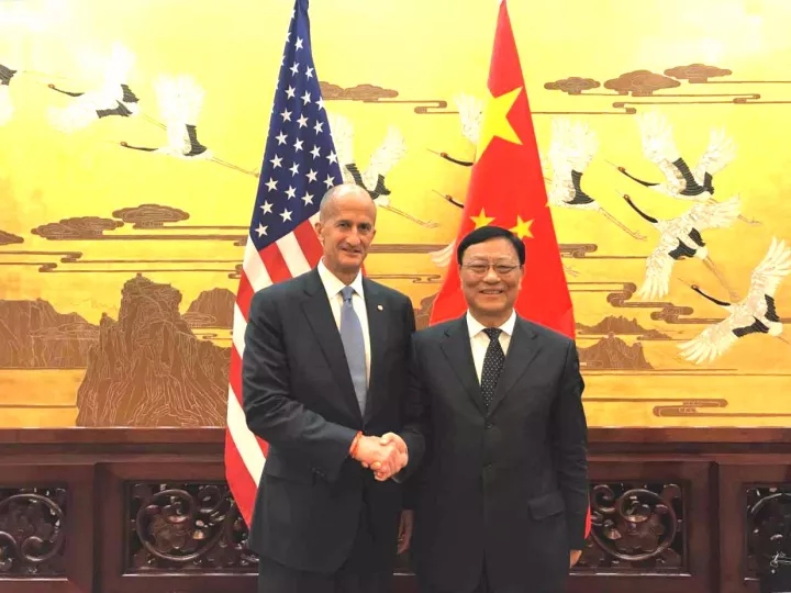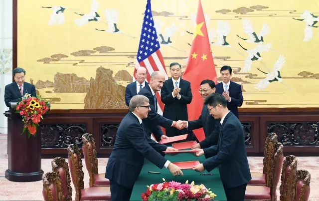 (圖為GE副董事長莊睿思和中國大唐集團(tuán)公司黨組書記、董事長陳進(jìn)行)