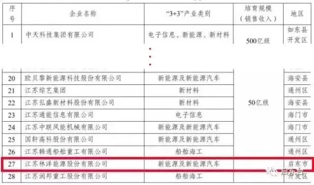 江蘇林洋能源股份有限公司作為符合“3+3+N”產(chǎn)業(yè)發(fā)展導(dǎo)向、“十三五”期間規(guī)模目標(biāo)50億級以上的重點工業(yè)企業(yè)成功上榜。