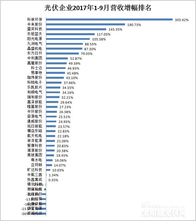 一、光伏企業(yè)2017年前三季度營業(yè)收入及增幅排行榜