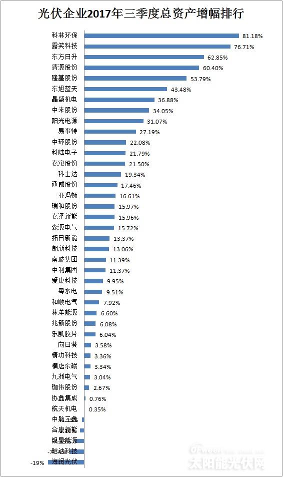 光伏企業(yè)2017年前三季度總資產(chǎn)增幅排行榜