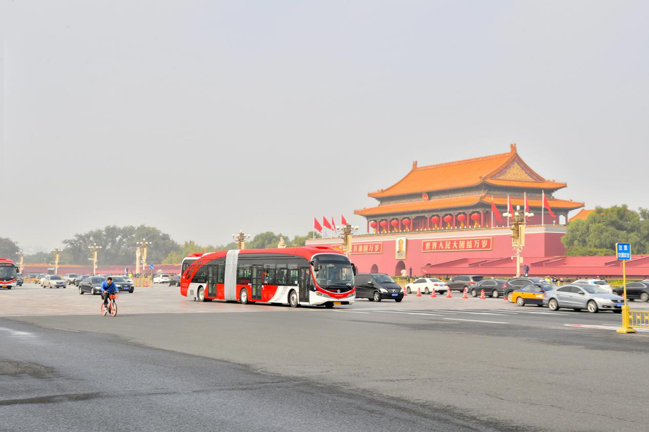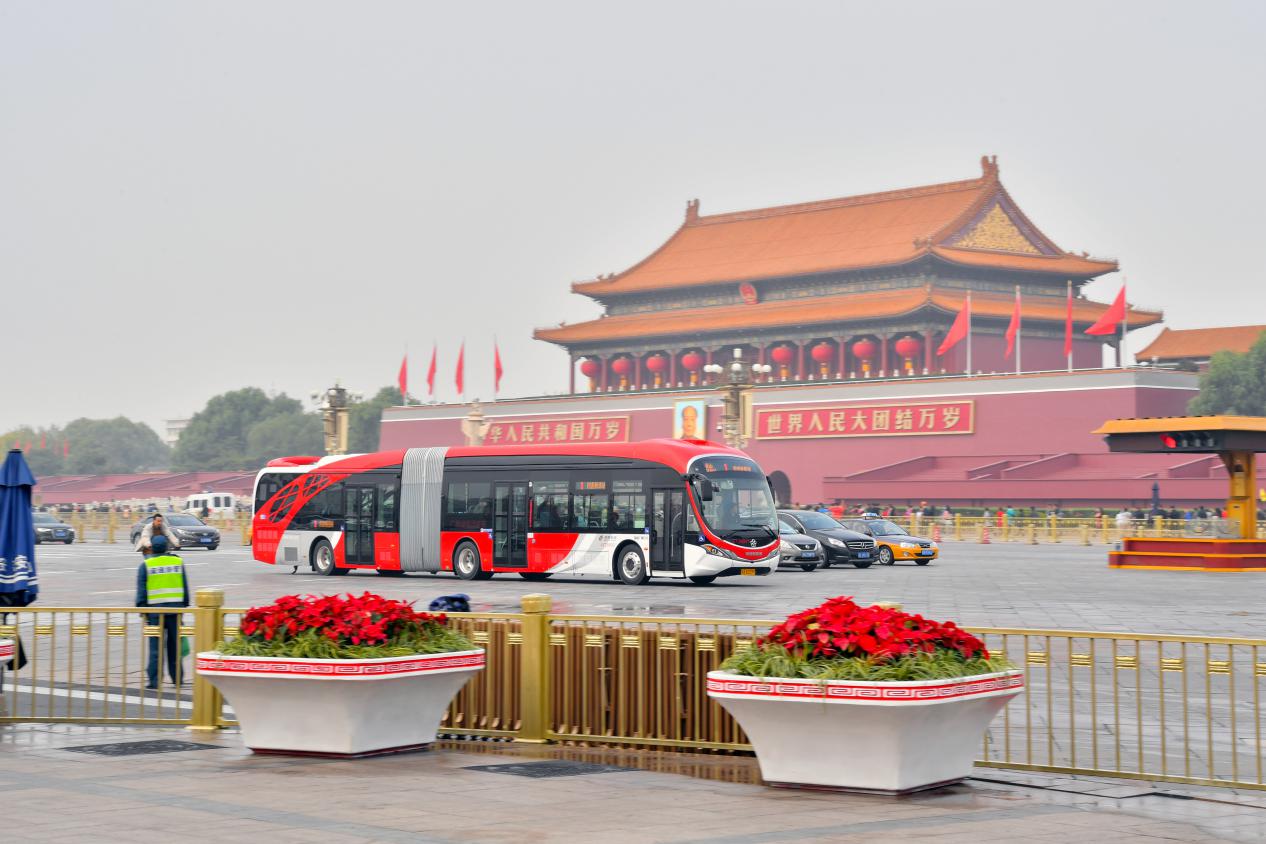 行駛過(guò)長(zhǎng)安街的18米純電動(dòng)公交車(chē)