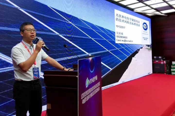 TüV南德大中華區(qū)南區(qū)光伏及儲(chǔ)能事業(yè)部資深項(xiàng)目經(jīng)理吳候福先生針對(duì) “光伏+電化學(xué)儲(chǔ)能電站技術(shù)風(fēng)險(xiǎn)和安全要求” 作主題演講