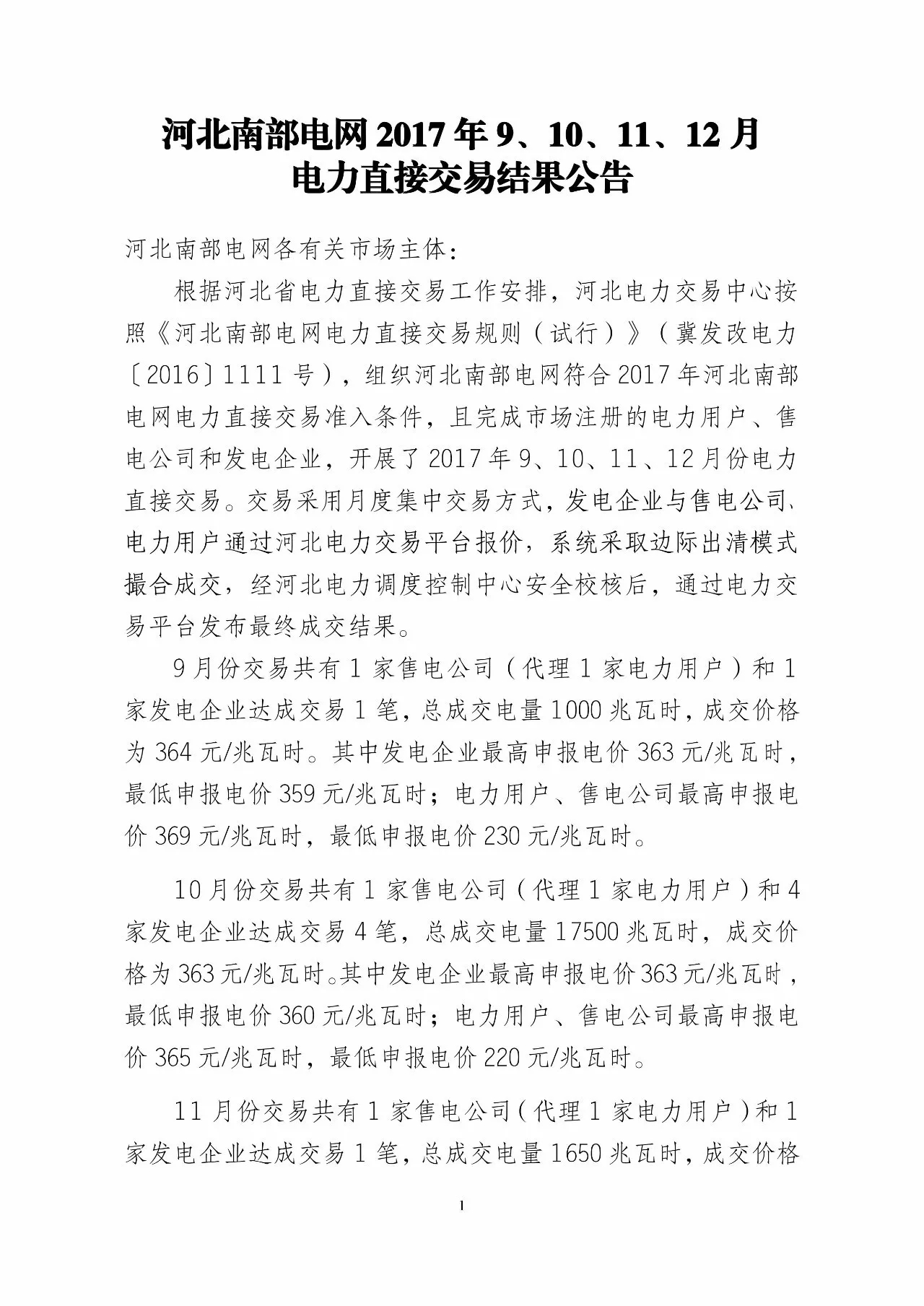 根據(jù)河北南網(wǎng)2017年的交易安排,今年交易規(guī)模330億千瓦時,其中年度雙邊協(xié)商230億千瓦時,上半年120億千瓦時,下半年安排110億千瓦時,剩余的100億作為月度集中競價分配到2-11個月,也就是每個月10億的交易規(guī)模。