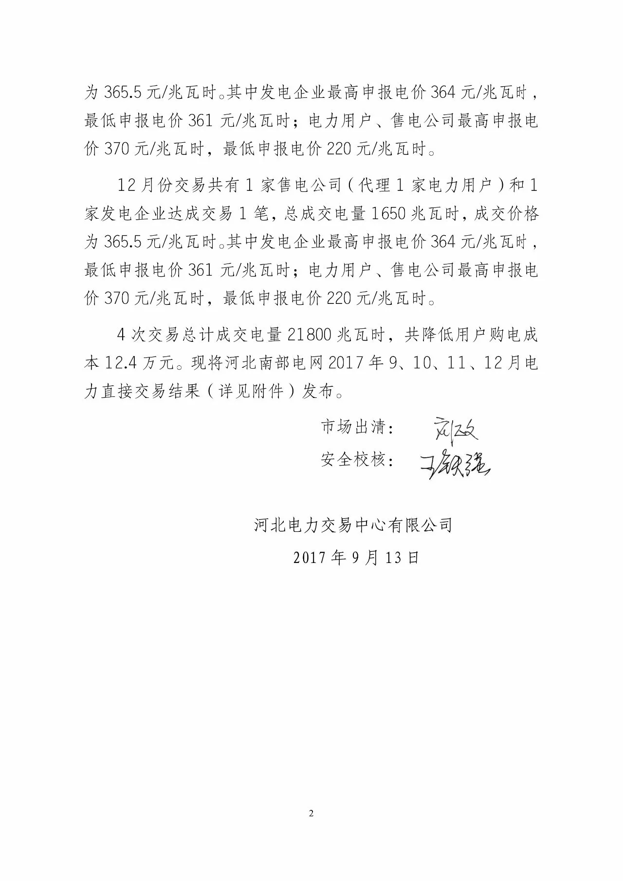 中國儲能網(wǎng)訊:9月13日,河北電力交易中心發(fā)布9-12月的電力直接交易結(jié)果,這次交易是集中交易,根據(jù)9月11日的通知,這次交易總規(guī)模8個億電量,也就是每個月2億的安排,這次成交電量0.218億千瓦時,三家售電公司代理用戶完成此次交易,預計降低用戶購電成本12.4萬元。