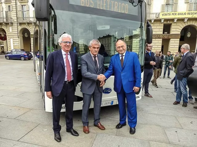 首批3臺大巴交付儀式在都靈卡斯特羅廣場舉行,皮埃蒙特大區(qū)主席Sergio Chiamparino,都靈市長Chiara Appendino以及當(dāng)?shù)毓贿\營公司都靈運輸集團(GTT)董事長兼總裁Walter Ceresa等眾多政要和民眾領(lǐng)袖均到場見證。