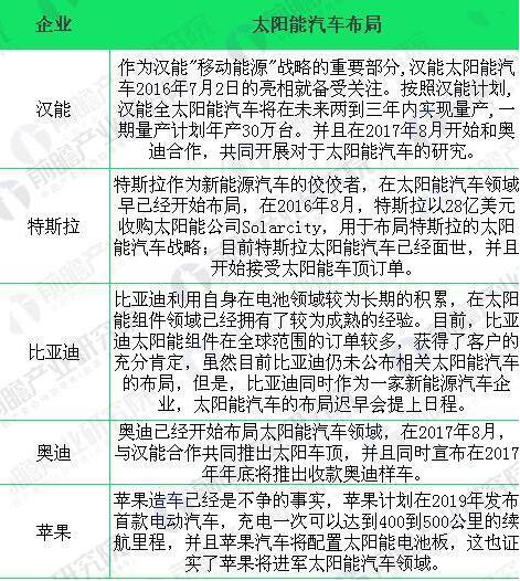 太陽能汽車布局情況