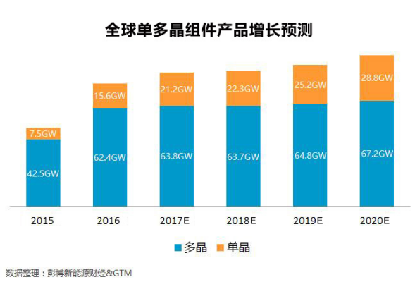 集邦新能源統(tǒng)計數(shù)據(jù)顯示,2017上半年光伏市場,從一季度的市場淡季到二季度的6.30搶裝,多晶硅片價格在4.5-5.3元/片之間,單晶硅片價格在6.3-6.5元/片之間,單晶幅度變動不大,一直處于高位。組件價格3元成為單多晶分水嶺,單晶組件價格3.1-3.2元/瓦,和多晶有0.2-0.3元/瓦的價差,而且產(chǎn)能不足一片難求,造成了包括“領(lǐng)跑者”項目在內(nèi)的眾多設(shè)計成單晶電站無法按期完工,錯失了6.30并網(wǎng)節(jié)點。