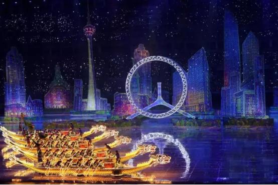 作為大型賽事的重頭戲,開幕式的精彩程度向來不亞于任何一場(chǎng)焦點(diǎn)賽事。天津全運(yùn)會(huì)開幕式在昵稱為“水滴”的天津奧林匹克中心體育場(chǎng)舉行,將全程全屏激光投影與真人表演、場(chǎng)外建筑燈光秀進(jìn)行巧妙合成,成就了開幕式展演的一次重大創(chuàng)新。