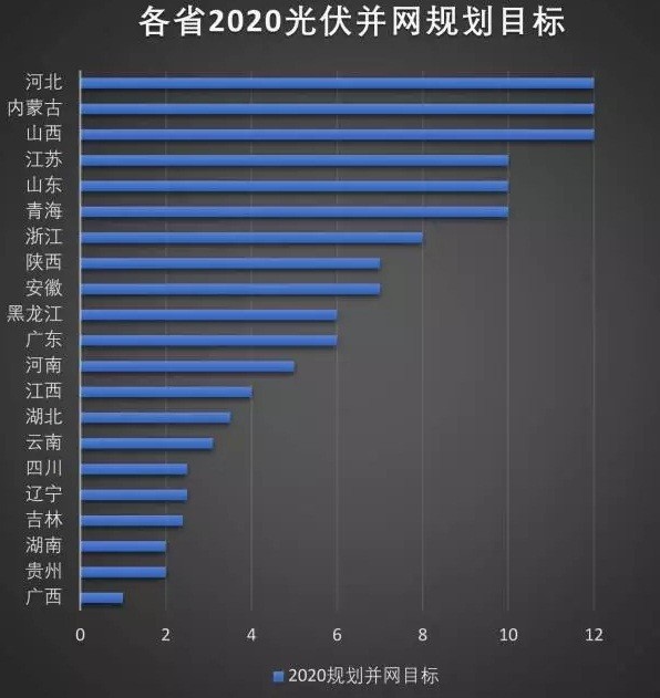 到2020年各省規(guī)劃普通地面規(guī)模128GW。(不含分布式)