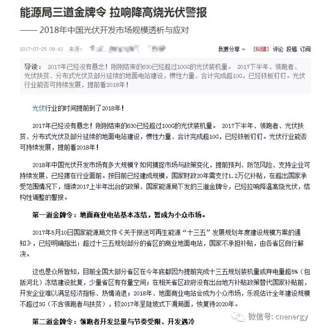以正視聽(tīng),記者迅速請(qǐng)教了多位行業(yè)專家和同行,行業(yè)對(duì)此文判斷基本一致——即這篇冠以“重磅”、“能源局”、“三道金牌令”、“給光伏產(chǎn)業(yè)降溫”的文章,不僅難掩“標(biāo)題黨”之嫌,且多處出現(xiàn)對(duì)當(dāng)前政策的誤讀,其論點(diǎn)邏輯混亂、主觀臆斷,經(jīng)不住事實(shí)推敲。
