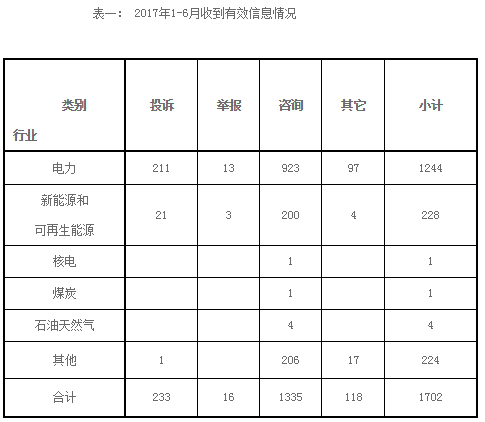原標(biāo)題:東北能源監(jiān)管局2017年1-6月份12398熱線受理處理情況通報(bào)