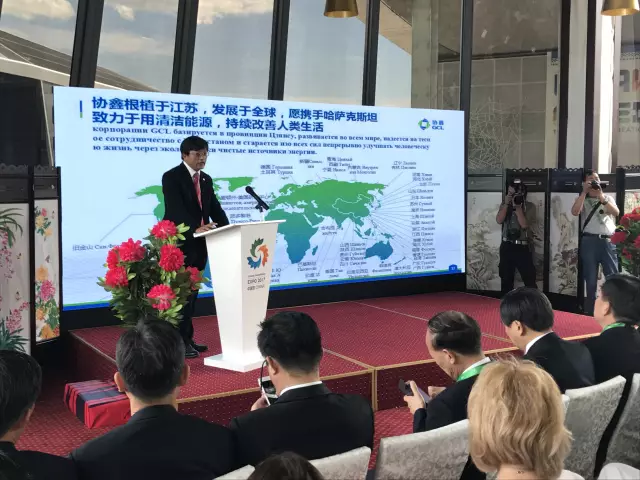中國儲能網(wǎng)訊:當(dāng)?shù)貢r間6月20日上午, 2017阿斯塔納世博會江蘇周活動在中國館拉開帷幕,江蘇省副省長陳震寧等200余位中外嘉賓參加開幕式,協(xié)鑫集團(tuán)作為江蘇省能源企業(yè)優(yōu)秀代表也重磅亮相,協(xié)鑫集成首席技術(shù)官鄭加鎮(zhèn)博士在開幕式上展示了協(xié)鑫智慧能源綜合利用解決方案。
