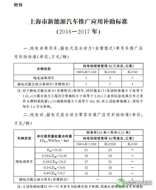 附件:上海市新能源汽車推廣應(yīng)用補(bǔ)助標(biāo)準(zhǔn)(2016-2017年)