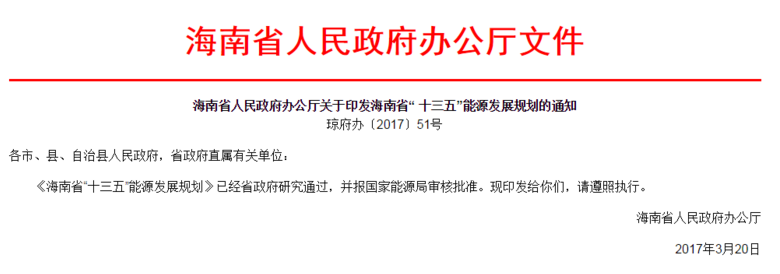(原標(biāo)題:海南省政府印發(fā)“十三五”能源發(fā)展規(guī)劃,到2020年推廣新能源汽車超3萬(wàn)輛)