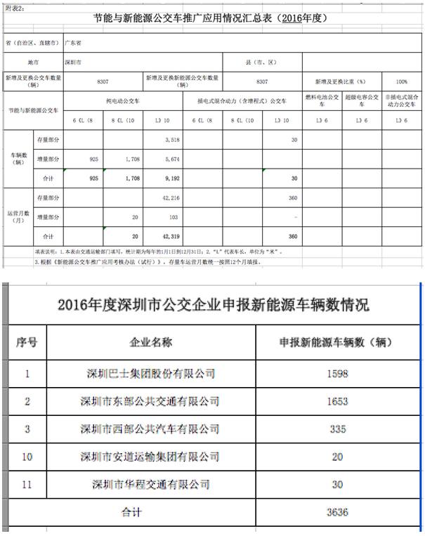 中國儲能網(wǎng)訊:4月19日,深圳市發(fā)布《關(guān)于2016年度深圳市公交行業(yè)公交車成品油價格補助及新能源運營補助相關(guān)車輛數(shù)據(jù)的公示》,公示顯示,深圳市2016年共計新增及更換新能源公交車8307輛,新增及更換比例100%,共有5家公交企業(yè)申請3636輛新能源車。