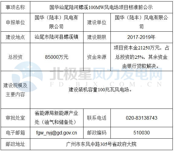 國(guó)華汕尾陸河螺溪100MW風(fēng)電場(chǎng)項(xiàng)目核準(zhǔn)前公示