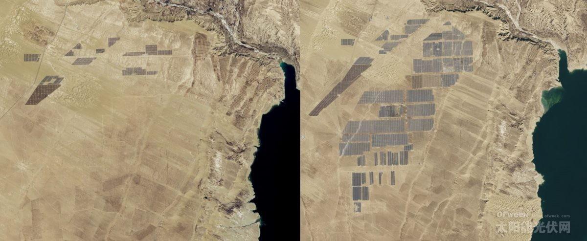 中國儲能網(wǎng)訊:美國航天局NASA發(fā)布了位于中國青海省全球最大的太陽能公園的兩幅衛(wèi)星圖像,揭示了這座850兆瓦發(fā)電廠的驚人規(guī)模。