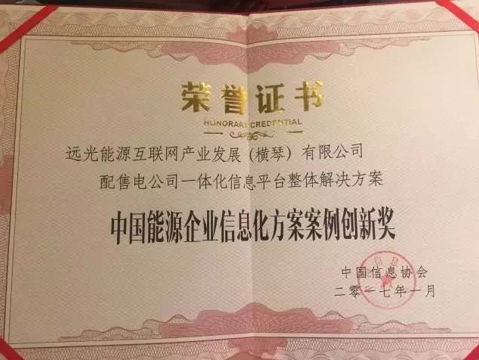 大會對過去一年來在能源信息化領(lǐng)域表現(xiàn)突出的企業(yè)、以及創(chuàng)新產(chǎn)品、優(yōu)秀案例進行了表彰。其中,遠光配售電公司一體化信息平臺整體解決方案”以其在三峽電能有限公司、珠海高遠電能科技有限公司的創(chuàng)新應用獲大會授予“中國能源企業(yè)信息化方案案例創(chuàng)新獎”。