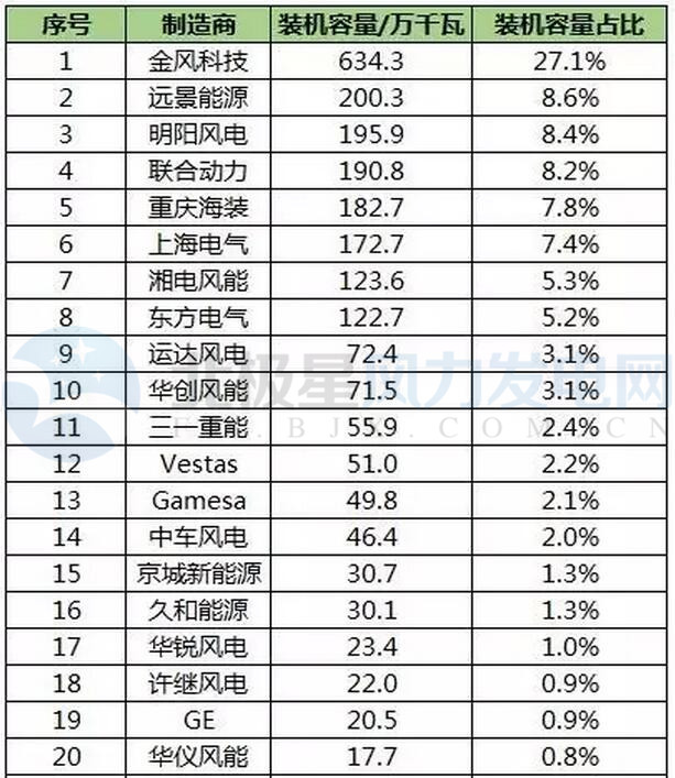 2016年中國風(fēng)電整機(jī)商排名