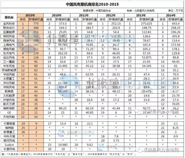 附:2010-2015年中國風(fēng)電整機(jī)商排名