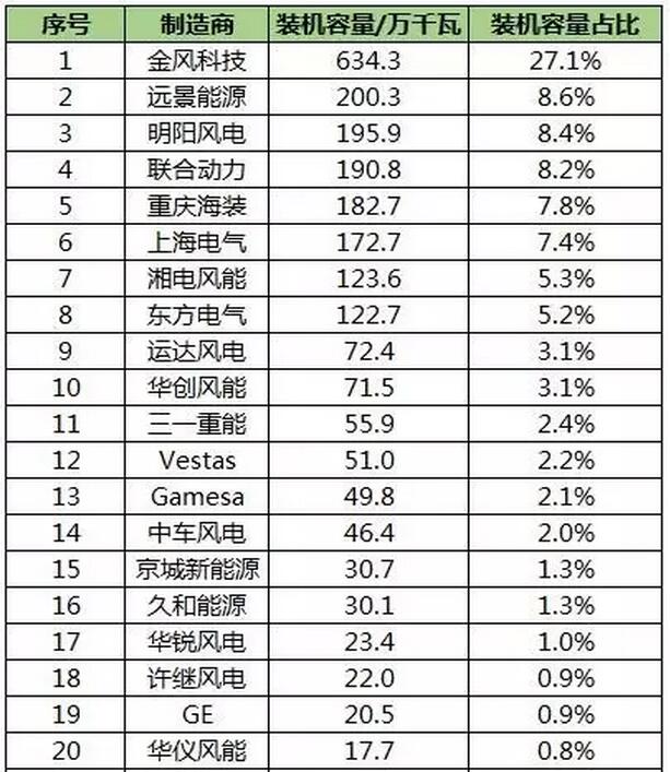風(fēng)電機(jī)組制造商裝機(jī)情況