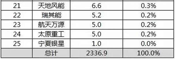 表2 2016年中國海上風(fēng)電制造商新增裝機(jī)容量