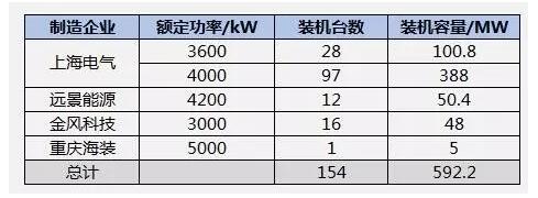 2016年,中國海上風(fēng)電新增裝機(jī)154臺,容量達(dá)到59萬千瓦,同比增長64%。共有4家制造企業(yè)有新增吊裝,其中,上海電氣的海上風(fēng)電機(jī)組供應(yīng)量最大,占比達(dá)到82.5%;其次是遠(yuǎn)景能源、金風(fēng)科技和重慶海裝。