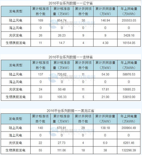 中國儲能網(wǎng)訊:國家可再生能源發(fā)電項目管理平臺昨日發(fā)布黑吉遼三省2016年平臺收錄數(shù)據(jù),由于上報數(shù)據(jù)不及時的原因,容量和電量差的還是有些多,但已經(jīng)相對好一些。2016年黑吉遼累計核準446個風電項目,累計核準容量近22.5GW(2246.17萬千瓦),累計并網(wǎng)339.42萬千瓦。以下為具體數(shù)據(jù):