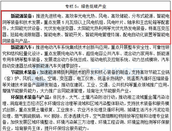 加快新能源產(chǎn)業(yè)發(fā)展。推進(jìn)風(fēng)電高效利用,大力發(fā)展智能電網(wǎng)技術(shù),加快發(fā)展5兆瓦級(jí)以上風(fēng)電機(jī)組、風(fēng)電場(chǎng)智能化開發(fā)與運(yùn)維。推動(dòng)太陽能多元化規(guī)模化發(fā)展,加強(qiáng)新型太陽能電池技術(shù)研發(fā),加速高效率低成本太陽能利用新技術(shù)、新材料、新產(chǎn)品產(chǎn)業(yè)化。推動(dòng)分布式能源綜合利用,加速融合儲(chǔ)能、微網(wǎng)應(yīng)用分布式能源發(fā)展,大力推動(dòng)多能多補(bǔ)、協(xié)同優(yōu)化的新能源綜合開發(fā)。