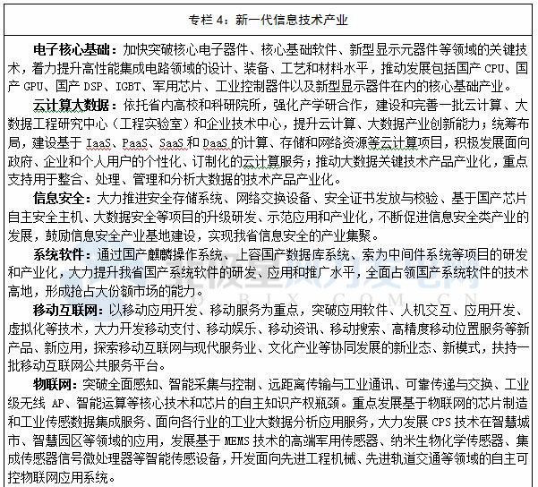 緊緊圍繞建設(shè)網(wǎng)絡(luò)強(qiáng)省戰(zhàn)略目標(biāo),重點(diǎn)發(fā)展核心電子器件、高端通用芯片、網(wǎng)絡(luò)設(shè)備、信息安全、系統(tǒng)軟件、云計(jì)算、大數(shù)據(jù)、移動(dòng)服務(wù)、物聯(lián)網(wǎng)、智能終端、北斗衛(wèi)星導(dǎo)航、數(shù)字醫(yī)療等產(chǎn)業(yè),促進(jìn)新一代信息技術(shù)與經(jīng)濟(jì)社會(huì)各領(lǐng)域創(chuàng)新融合,培育“互聯(lián)網(wǎng)+”生態(tài)體系,形成融合創(chuàng)新、智能協(xié)同、安全可控、特色鮮明的新一代信息技術(shù)產(chǎn)業(yè)體系,為全面建成廣覆蓋、高性能、多內(nèi)容的“信息網(wǎng)”提供堅(jiān)實(shí)產(chǎn)業(yè)基礎(chǔ)。