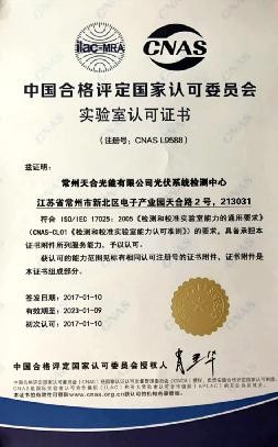 “我們非常高興地宣布天合光能光伏系統(tǒng)檢測(cè)中心順利通過(guò)CNAS實(shí)驗(yàn)室認(rèn)可審查,獲得由中國(guó)合格評(píng)定國(guó)家認(rèn)可委員會(huì)頒發(fā)的實(shí)驗(yàn)室認(rèn)可證書(shū)?!碧旌瞎饽芟到y(tǒng)檢測(cè)中心主任全鵬先生說(shuō)道,“隨著分布式系統(tǒng)的市場(chǎng)發(fā)展,光伏系統(tǒng)端質(zhì)量越來(lái)越受到業(yè)主的關(guān)注,我們將進(jìn)一步增強(qiáng)系統(tǒng)檢測(cè)中心的對(duì)外服務(wù)能力,為行業(yè)系統(tǒng)質(zhì)量提升做出貢獻(xiàn)。”