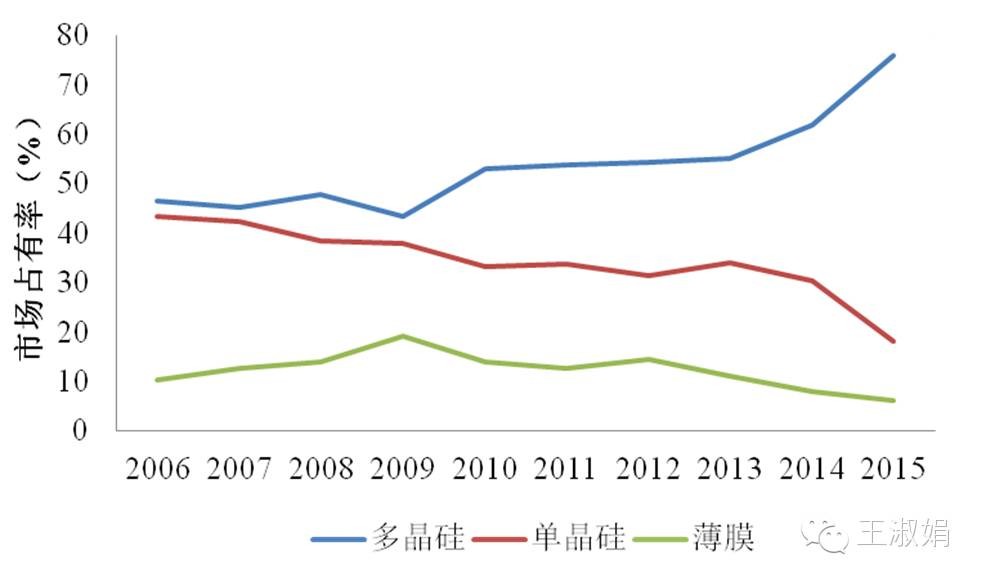 圖2:2006~2015年不同類(lèi)型組件市場(chǎng)份額情況