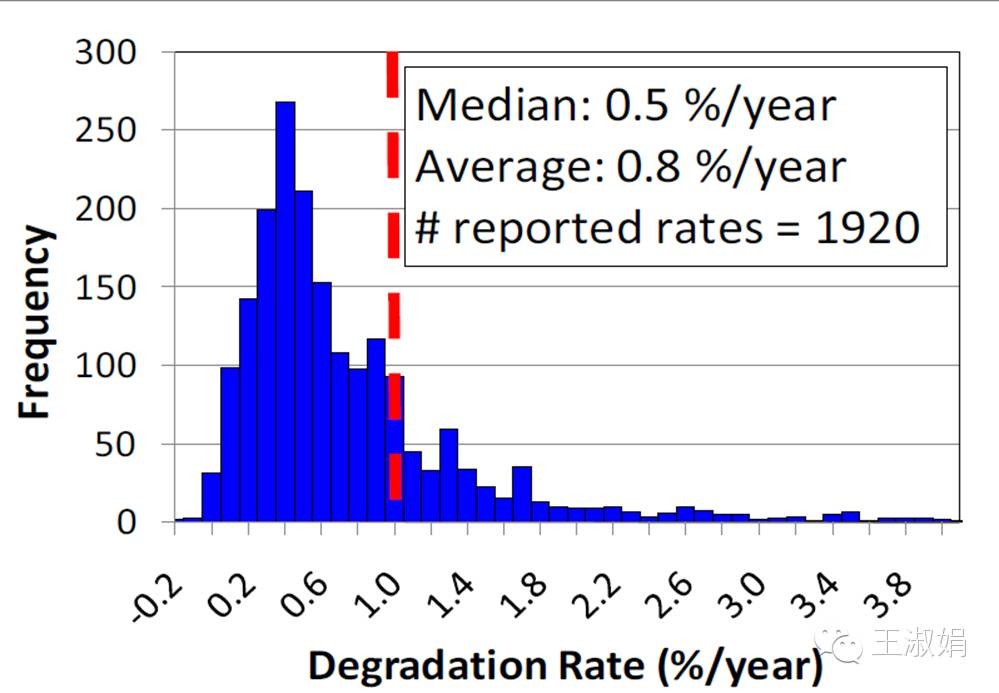 下圖就是美國(guó)NREL實(shí)驗(yàn)室做的一個(gè)組件功率衰減的統(tǒng)計(jì)。