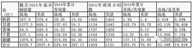 2016年西北五省風(fēng)電并網(wǎng)運(yùn)行情況