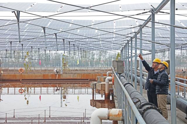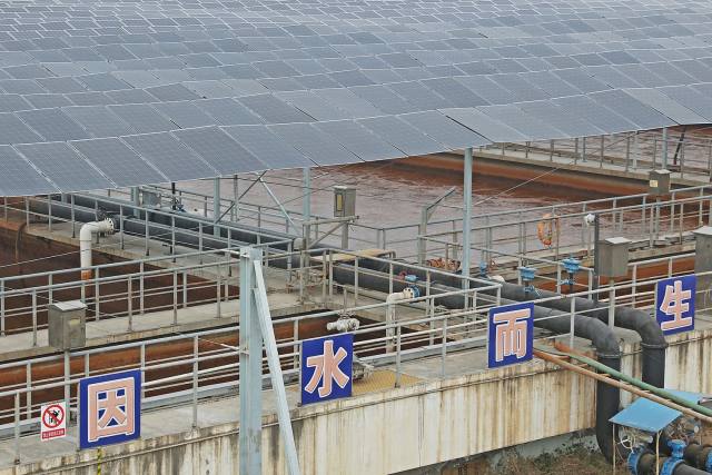 該項(xiàng)目在國(guó)內(nèi)首創(chuàng)“污水處理廠+魚腹式光伏支架系統(tǒng)”的模式,解決了“污水處理廠跨度空間大和光伏電站融合難”的問(wèn)題。作為傳統(tǒng)“耗能大戶”的污水處理廠,通過(guò)建設(shè)分布式光伏電站完成電量自發(fā)自用,實(shí)現(xiàn)經(jīng)濟(jì)效益和環(huán)境效益的雙贏。將光伏電站建設(shè)在污水處理池上方,既不占用額外土地,也不影響污水處理廠的正常運(yùn)營(yíng)。同時(shí),與傳統(tǒng)鋼架結(jié)構(gòu)方案相比,魚腹式光伏支架結(jié)構(gòu)優(yōu)美、用鋼量少,承重強(qiáng),成本低,能更充分利用污水處理廠空間。