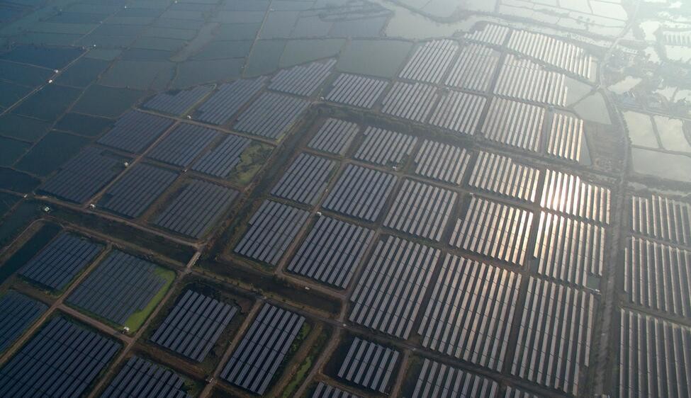 這是2016年12月3日航拍的位于浙江省湖州市南潯區(qū)和孚鎮(zhèn)漾東村的100兆瓦光伏發(fā)電項目。據(jù)了解,該項目占地4000多畝,30多萬塊光伏組件架設(shè)在總面積2400畝的魚塘上方。 據(jù)統(tǒng)計,至2016年底,浙江太陽能發(fā)電裝機容量達338.2萬千瓦,年發(fā)電量22.2億千瓦時,同比增長189.9%。