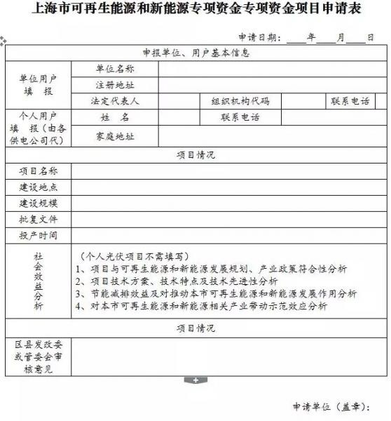 附表:上海市可再生能源和新能源專項資金項目申請表