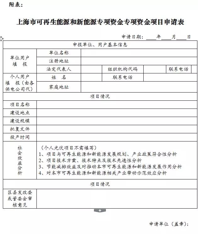 附表:上海市可再生能源和新能源專(zhuān)項(xiàng)資金項(xiàng)目申請(qǐng)表